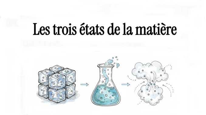 Ces documents pédagogiques présentent une étude détaillée des trois états physiques de la matière : solide, liquide et gazeux. Ils expliquent que les solides se divisent en deux catégories, compacts ou divisés, selon qu’ils conservent leur propre forme ou épousent celle du récipient. Les liquides, quant à eux, sont des fluides sans forme définie dont la surface libre reste toujours plane et horizontale au repos. Les gaz se distinguent par leur capacité à occuper tout l’espace disponible, étant à la fois compressibles et expansibles. Enfin, les sources utilisent un modèle particulaire pour illustrer comment la disposition et le mouvement des molécules déterminent ces propriétés physiques.